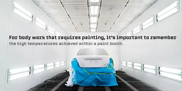 For body work that requires painting, it’s important to remember the high temperatures achieved within a paint booth, especially during the curing of the paint. Battery temperature and time limits can be different from one manufacturer to the next — and even from one model to another within the same manufacturer! To help the industry with variations in temperatures, I-CAR’s Repairability Technical Support (RTS) portal will soon display a master list that describes maximum vehicle battery temperature and time compared to paint curing temperatures and times. Case in point: Some OEMs specify complete removal of the battery, while others provide specific instructions on maximum temperature/time for painting. Again, check the OEM guidelines.